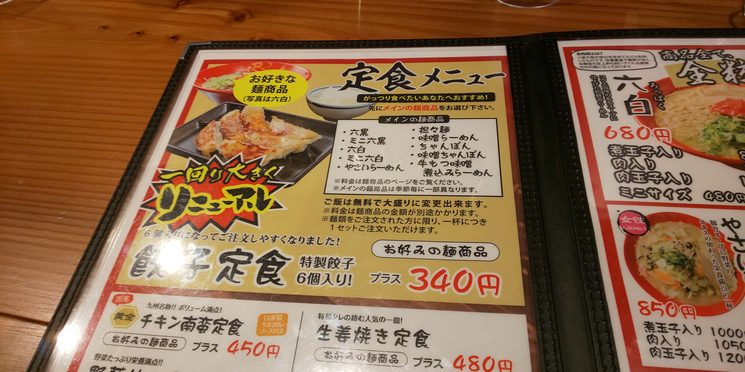 六白(ろっぱく)ラーメンに炙り肉肉ご飯プラス餃子3個のセットを頼みました