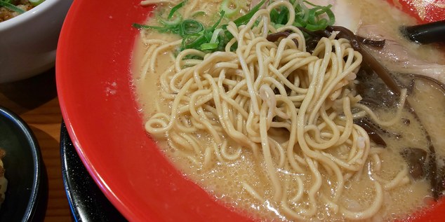 麺はとんこつラーメンによく合う細麺を使用しています。