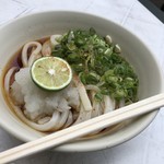 乗り換えの短時間にサクッと食べることができます。少し太めの麺は、コシが十分でもっちりした歯応え。出汁は、イリコ出汁で薄い色ですがイリコの風味たっぷりの出汁で、塩加減もちょうどいいです。立ち食いスタイルの店で(外に腰を掛けるところもありますが)サクッと食べて次の目的地に行くにはいいですね。
