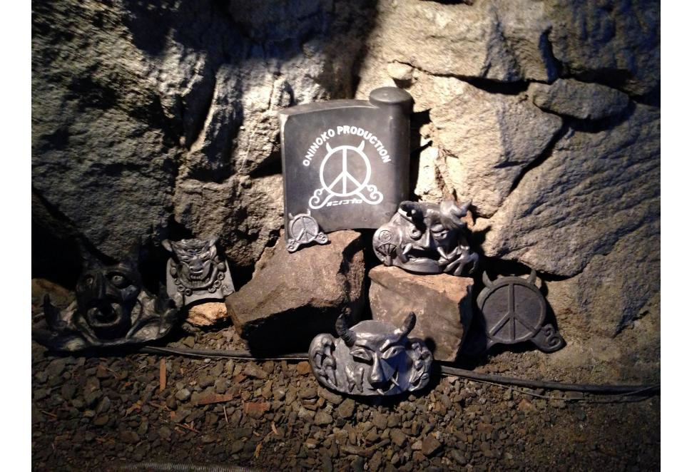 大正3年に発見された島の中心部、鷲ヶ峰の中腹あたりにある洞窟です。夏でもひんやりして、妖しげな雰囲気が漂う洞窟、全長400メートルの迷路のような洞窟内にはたくさん鬼の人形が並んでいます。洞窟近くの土産屋では、きびだんごも味わうことができます。また、洞窟内には、「瀬戸内国際芸術祭2013」の作品として、県内の中学生約3000人が挑戦した鬼瓦が公開されています。