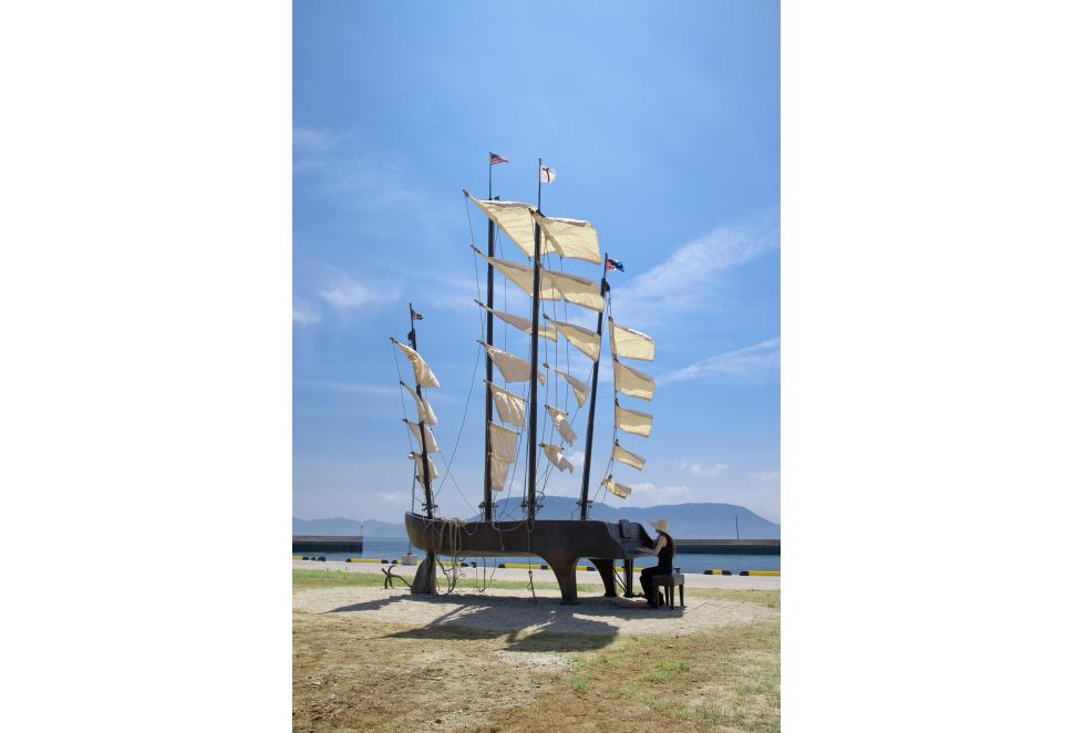 海沿いを歩いて行けば突如として現れる船のようなアート作品。グランドピアノとその上に大航海時代を象徴した帆が4本立っています。 波の音をグランドピアノが奏でているような、奇妙な感覚を味わうことができるでしょう。