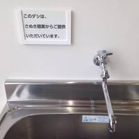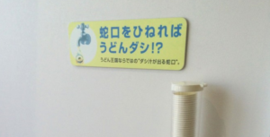 高松空港のうどん出汁が出る蛇口。香川をこれから出発する人、香川に今到着した人はぜひ飲んでみてくださいね。きっと早くさぬきうどんが食べたくなるはずです。