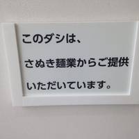 このうどん出汁は『さぬき麺業』。県内に6店舗、大阪に2店舗、東京に1店舗の有名店の味を無料で提供してもらえます。