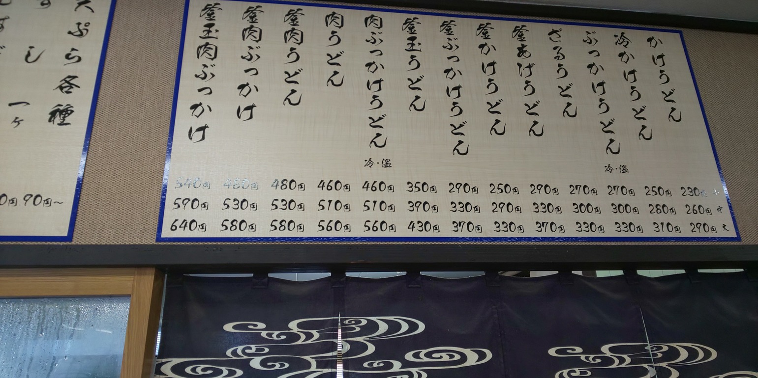 | 釜あげうどん | 290円 | 330円 | 370円 |
