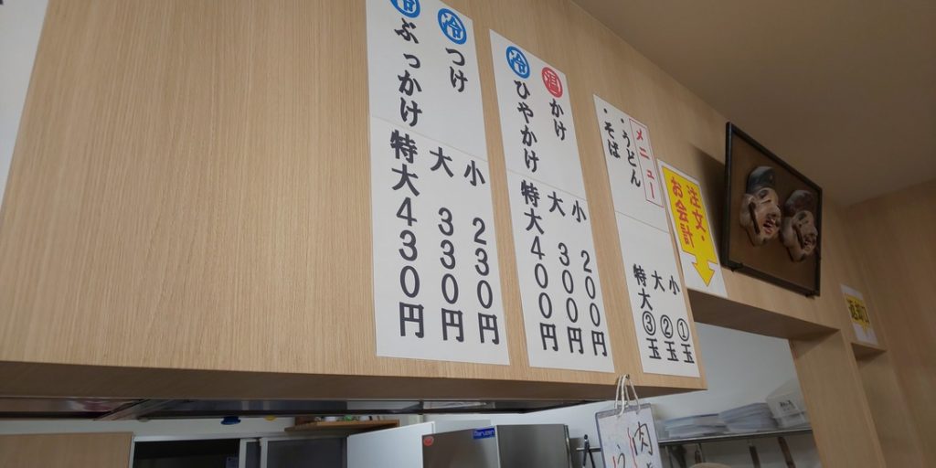 | ひやかけうどん | 200円 | 300円 | 400円 |