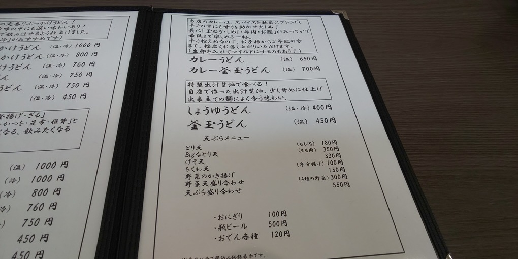 かしわ天うどん、げそ天うどん、店長おすすめのカレーうどんも人気のメニューになっています。