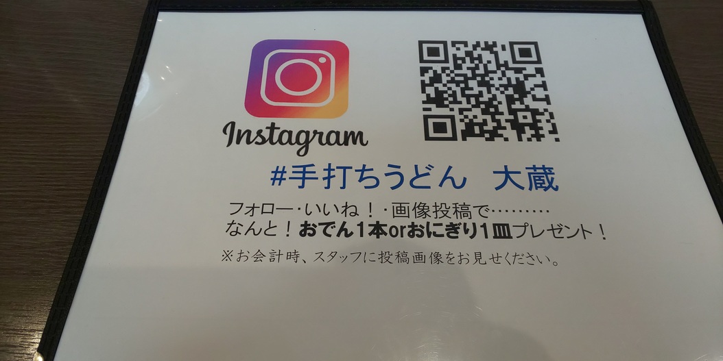 フォロー、いいね!画像投稿でおでん1本またはおにぎりを1皿プレゼントしてもらえます。