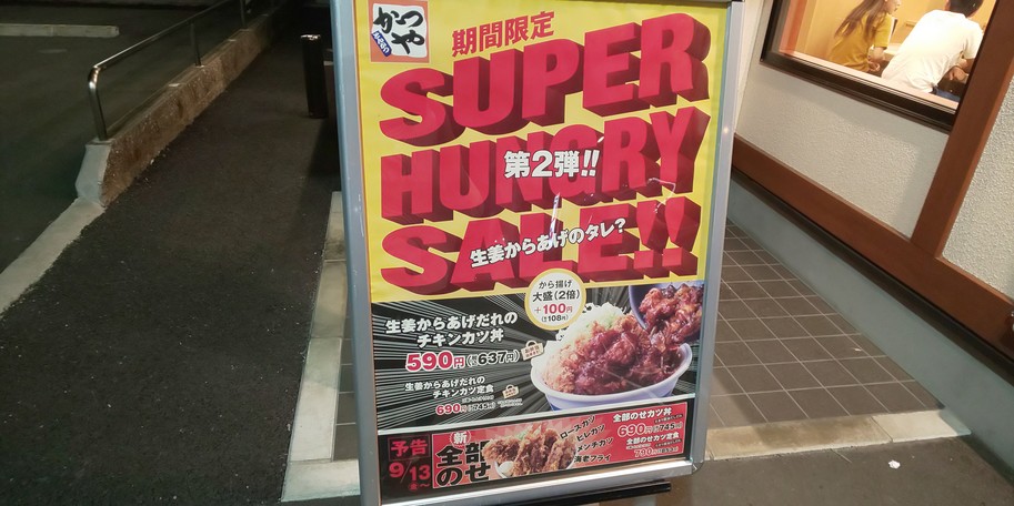 かつやは朝10:30~夜の23:30まで(L.Oが23:00)営業しています。
