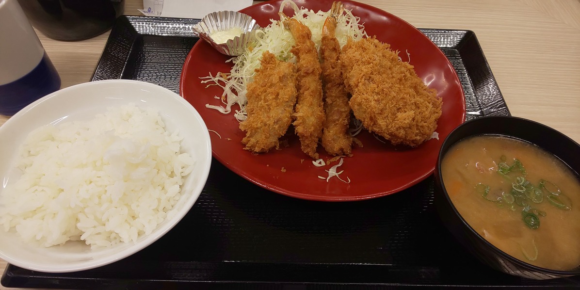 本日は、海老・ヒレ・メンチカツ定食を食べました。