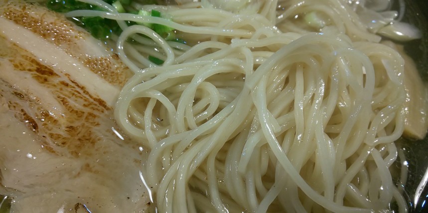 以前、鯛塩ラーメン、海老塩ラーメンは食べたことがあったので、本日はあっさり目な煮干し塩ラーメンにしました。麺は、極細ストレート麺にしました。