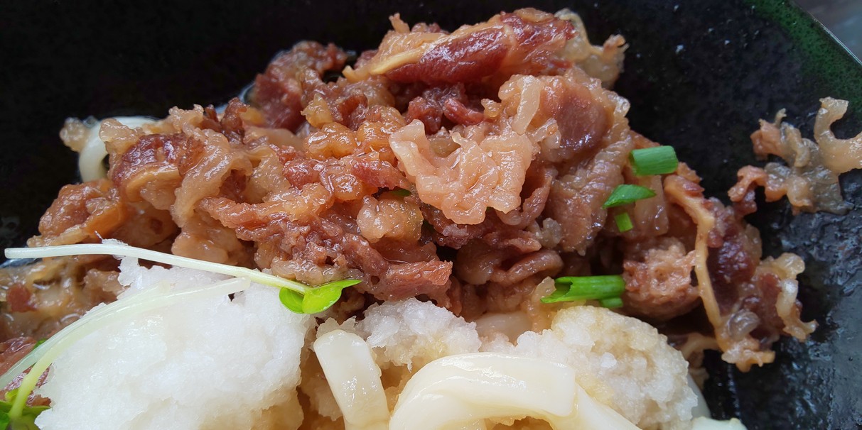 下味を付けた牛肉を単にトッピングするだけでなく、注文後に再度かけだしで煮込んで提供されます。