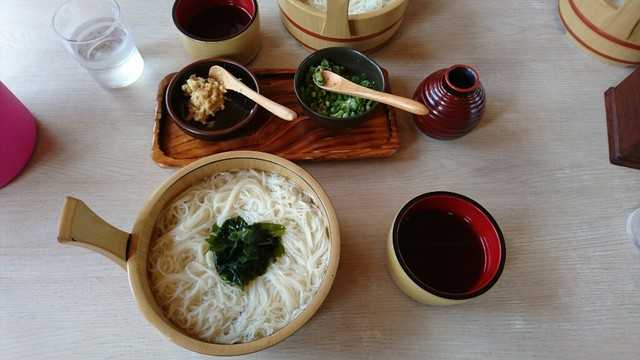 普段、そうめんは乾麺を茹でて食べますが、こちらではは生そうめんを食べることができます。こちらの メニューは、生そうめん500円のみです。生そうめんは今まで食べてた乾麺のそうめんとは全然違います。乾麺はコシがありますが、生そうめんは弾力を残してしっとりした食感です。喉越しがすごく良くつるっと食べることができます。程よく甘みがあるつけだしが抜群です。生そうめんのお土産もありますが、日持ちもしないので気を付けて購入してくださいね。