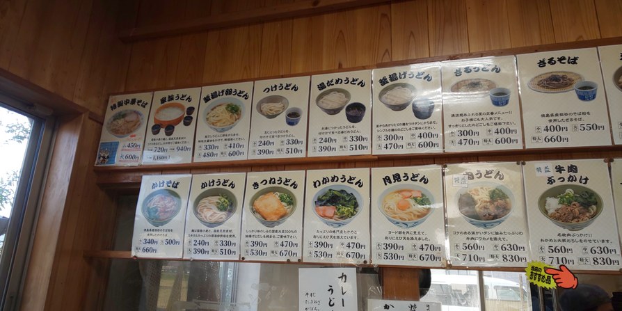 | かけうどん | 240円 | 330円 | 390円 | 510円 |