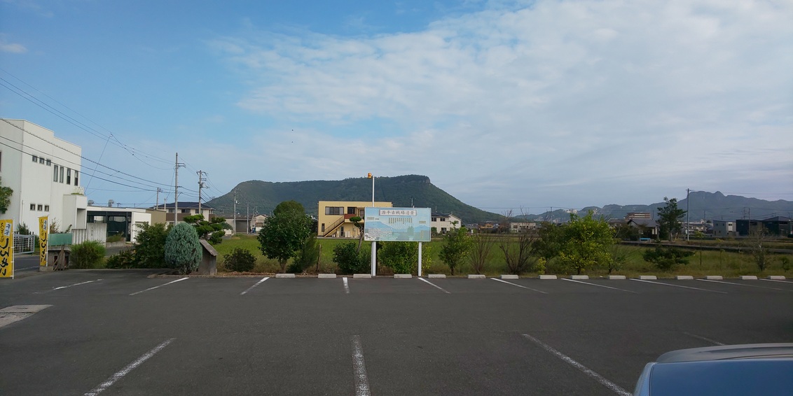 こちらのお店の駐車場から真北の方角に屋島を見ることが出来ます。