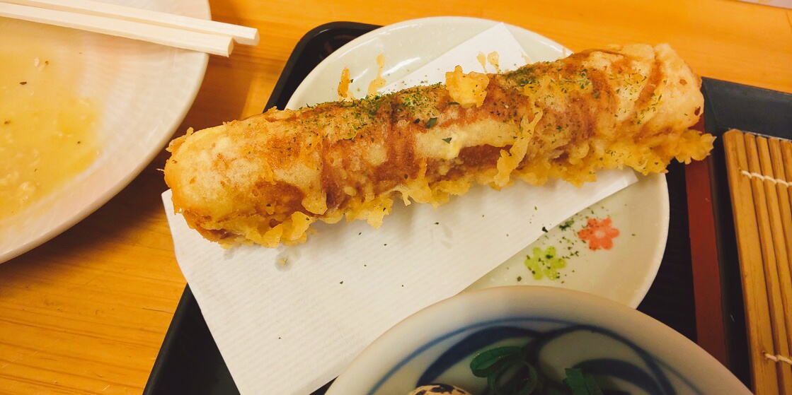 こちら、1本丸々の竹輪で。食べ応えがある竹輪です。
