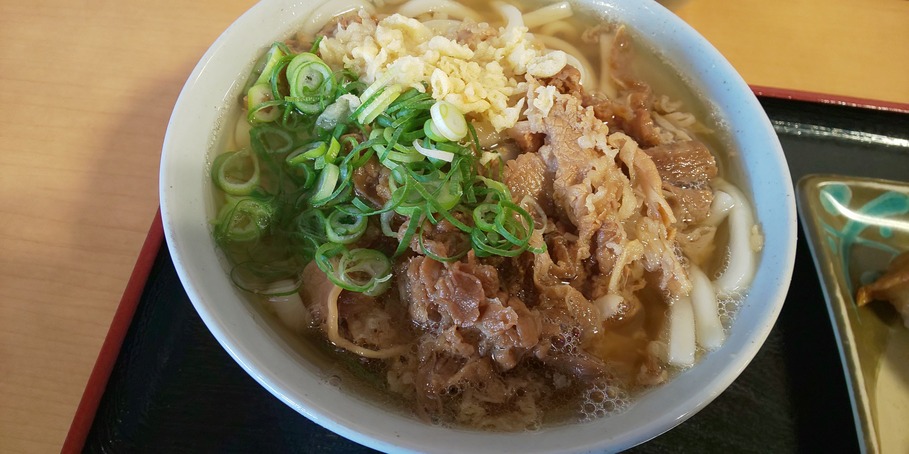 かけうどんが210円とかなので結構お高いのですが、びっくりするくらいの肉のボリューム。甘辛く、しかも筋を感じることもない柔らかいもので、美味しかったですしお値打ちだと思いました。食べログから引用