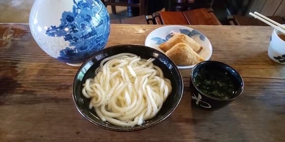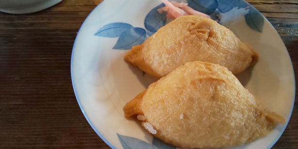 7. 本日は、釜揚げうどんといなり寿司をいただきました。