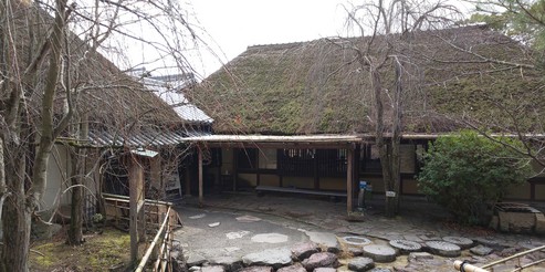 さらに進むと、かやぶき屋根の民家が見えてきます。