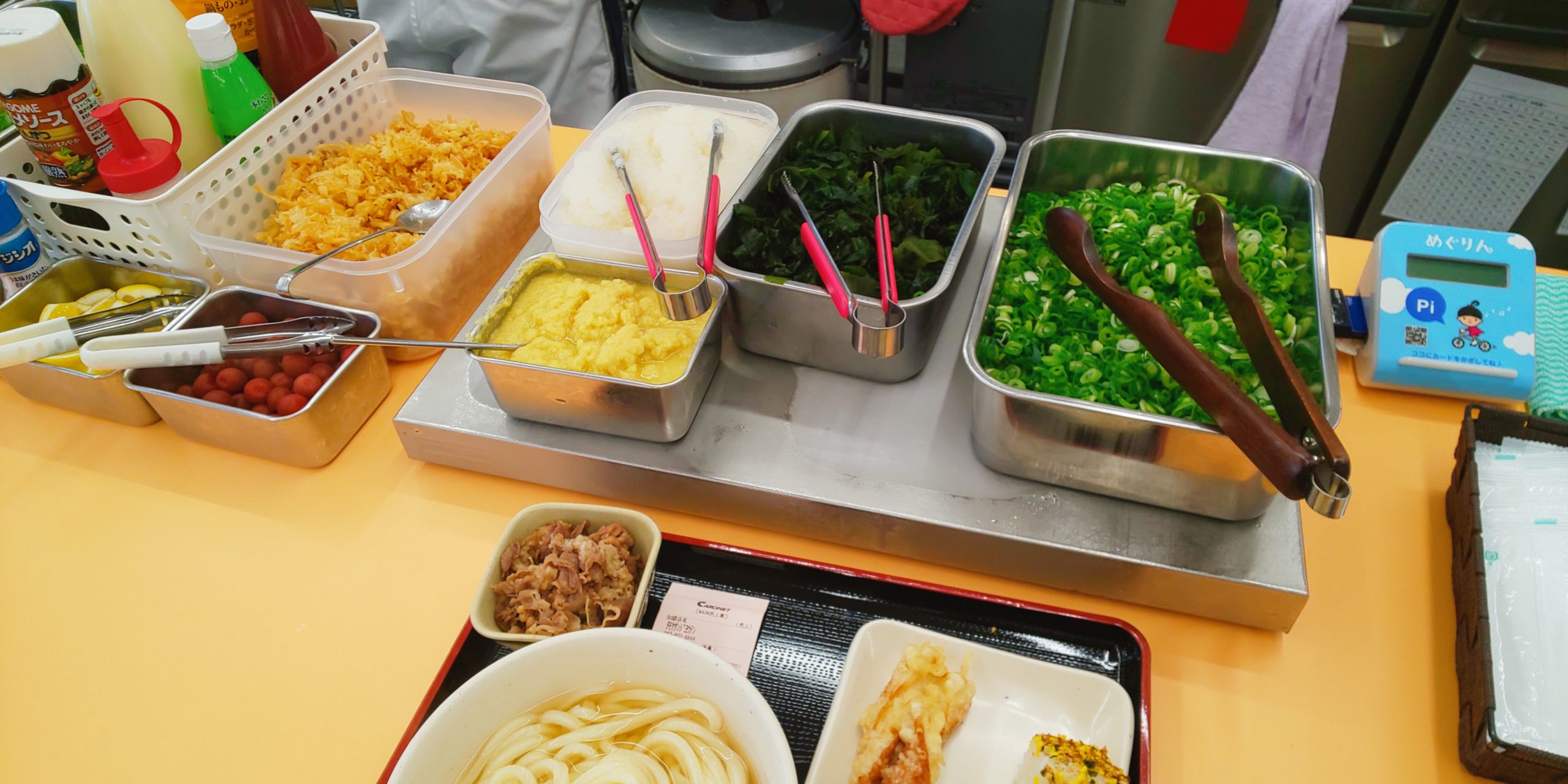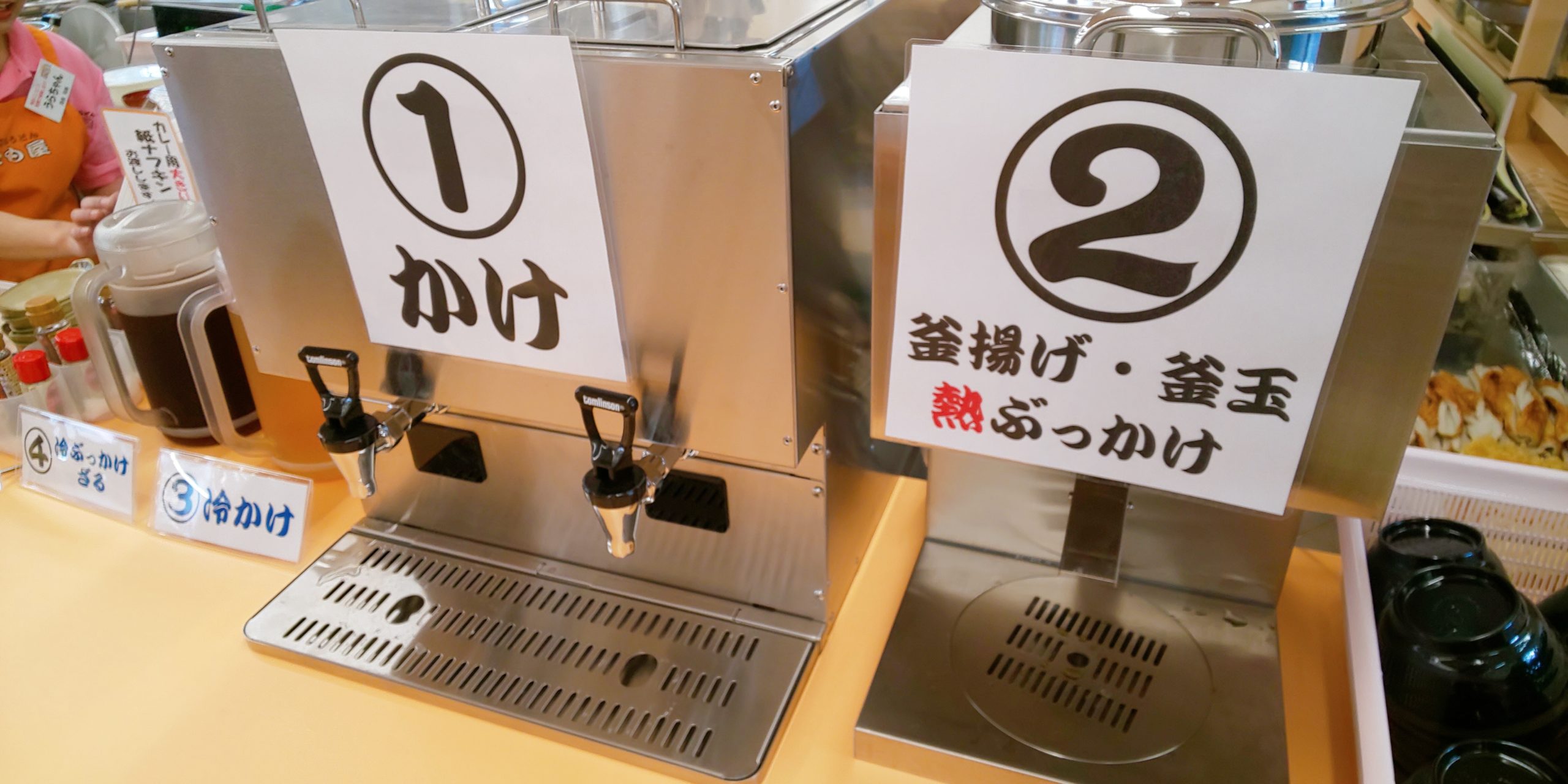 かけうどんなどの出汁を、タンクから入れ、会計を済ませます。