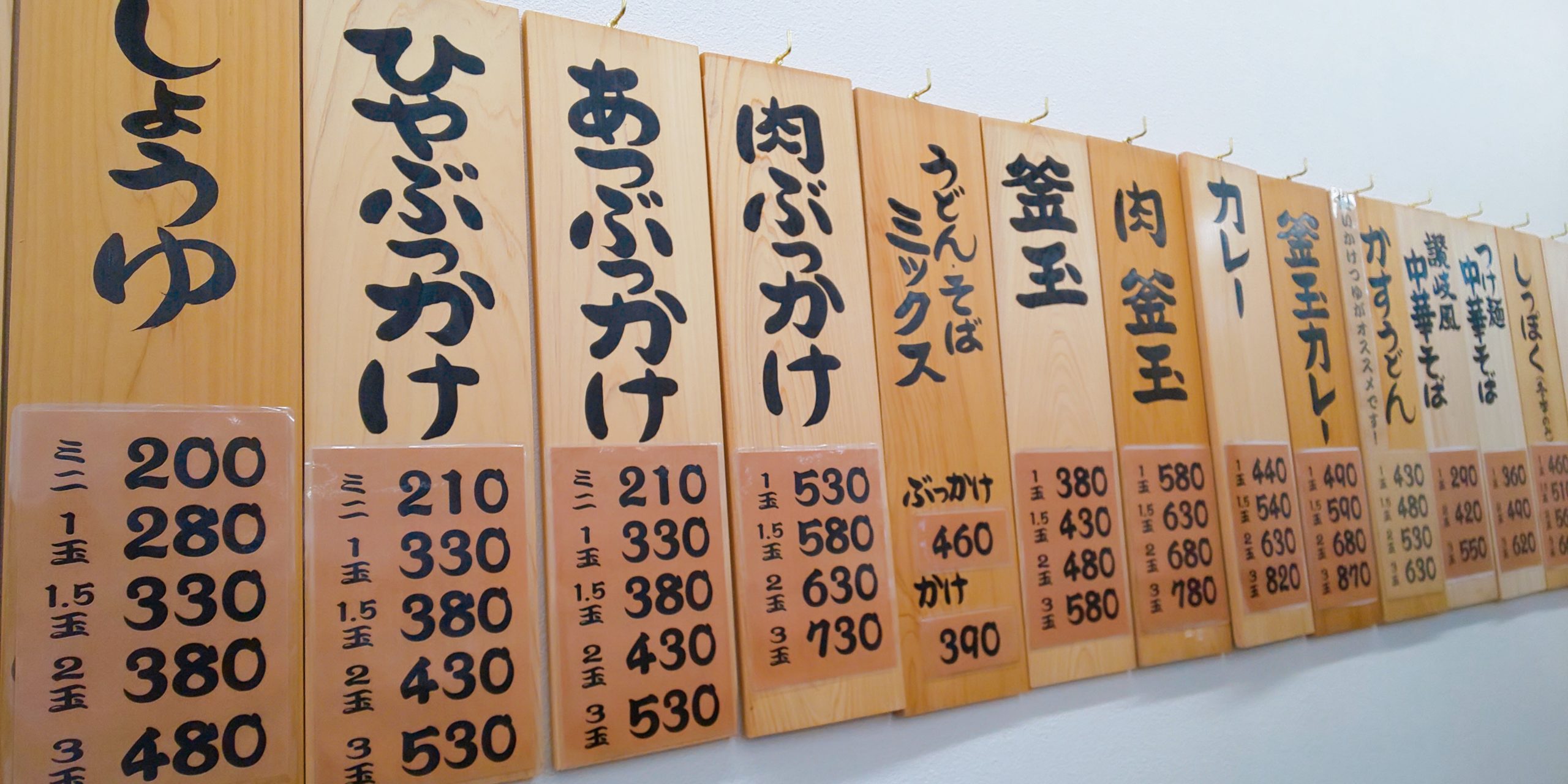 | 釜あげうどん | – | 330円 | 380円 | 430円 | 530円 |