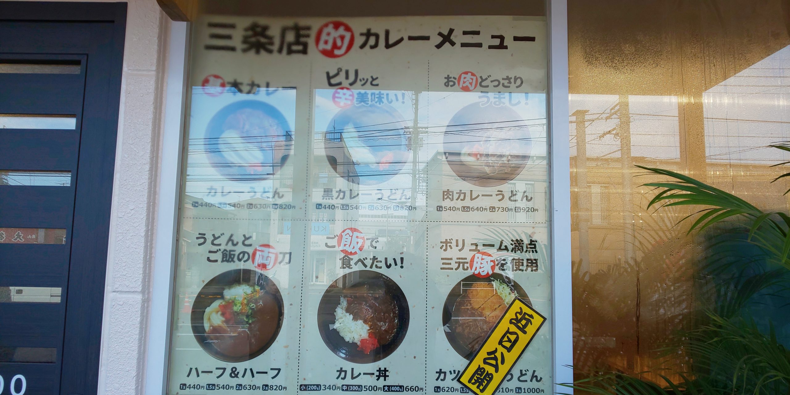 カレーうどん:1玉440円、1.5玉540円、2玉630円、3玉820円