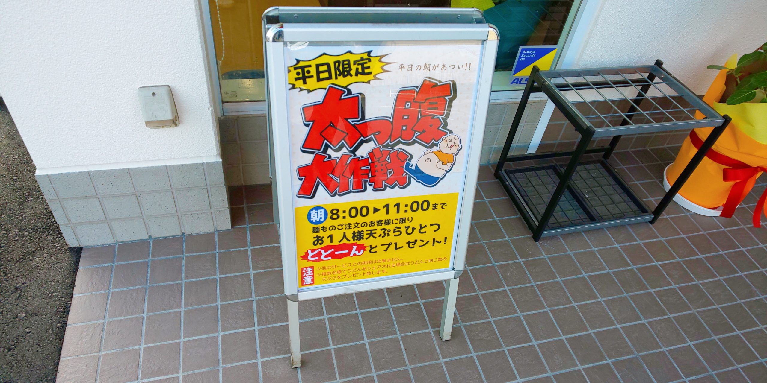 ・平日限定(朝8時から11時まで)天プラを一つプレゼント