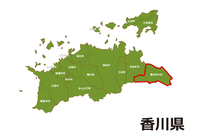 香川県の地図で言うと、下の地図で□で囲ったところ(東かがわ市)です。