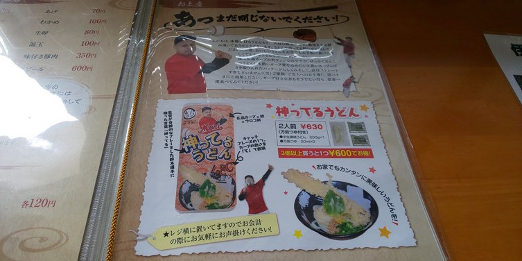 広島カープファンの大将のおうちうどん⇒「神ってるうどん」2人前630円