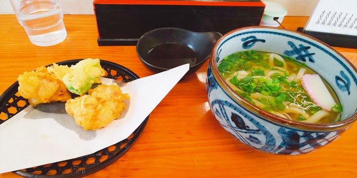これで400円ww(かけうどん250円、かしわ天ハーフ:150円)