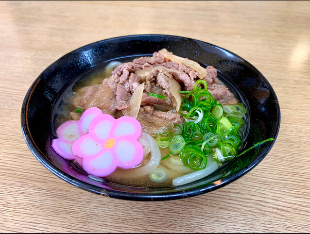 こちらのお店は肉うどんが人気のメニューです。自伝のタレで煮込まれた肉うどんは絶品です。