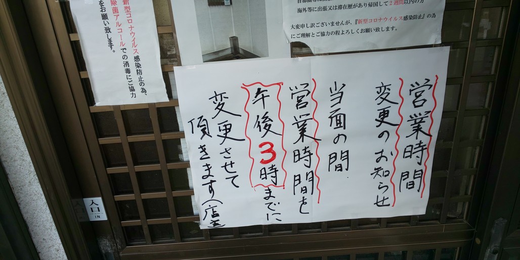 コロナの影響で当面の間、15:00終了です。