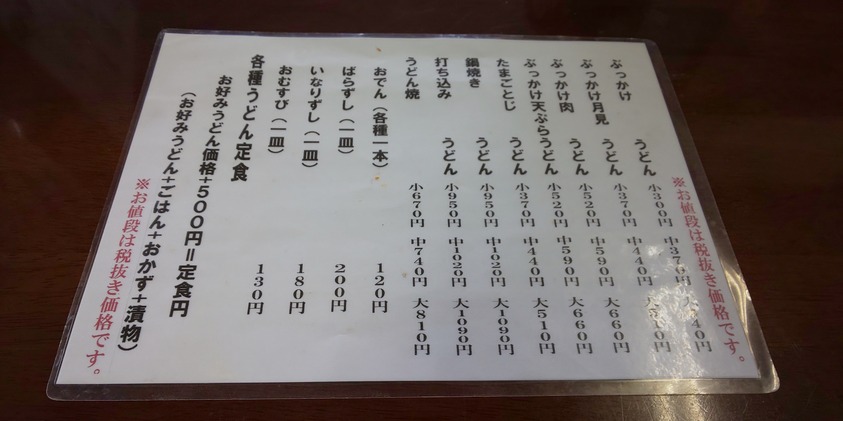 かけうどん300円370円 440円