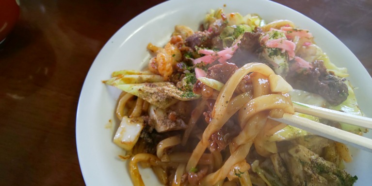 お店特製の和風ソースがうどんによく絡む。